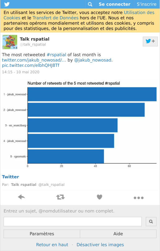 Ici vous trouverez un aperçu des différentes cartes et figures faîtes avec R et disponibles sur mon site web. Utilisez ces exemples de graphiques avec {ggplot2}, des exemples de cartes avec {tmap} ou {ggplot2}, des exemples de figures en 3D avec {rgl}, {rayshader} ou {rayrender}. De quoi alimenter votre propre galerie de figures avec R.